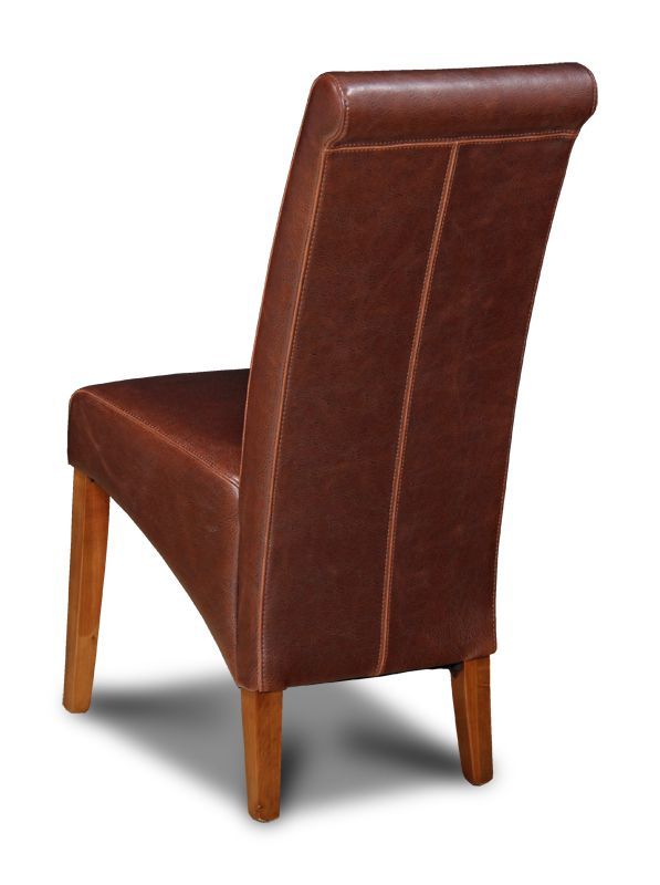 The Antique Brown Leather Rollback Dining Chair is a distinctive and stylish piece of home dining room design, ideal for homeowners looking for a restaurant-quality seating experience in their own home. Each chair's rollback design allows you to sink into a comfortable and absorbing home dining experience, at any number of dining tables from traditional Mango Dining Tables to modern dining room designs.