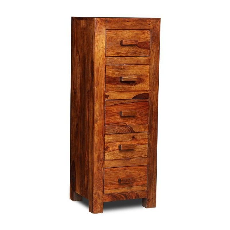 Each of our Cuba 5 Drawer Tall Boys are made from the finest Indian Sheesham Wood which in this example is given a rich honey wood finish to go along with matching Sheesham Wood handles.