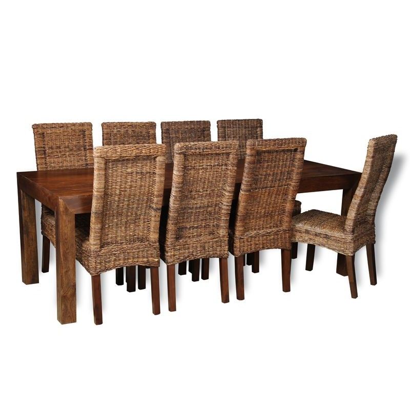 Dakota 220cm Dining Table & 8 Rattan Chairs (3 Styles) - In Stock