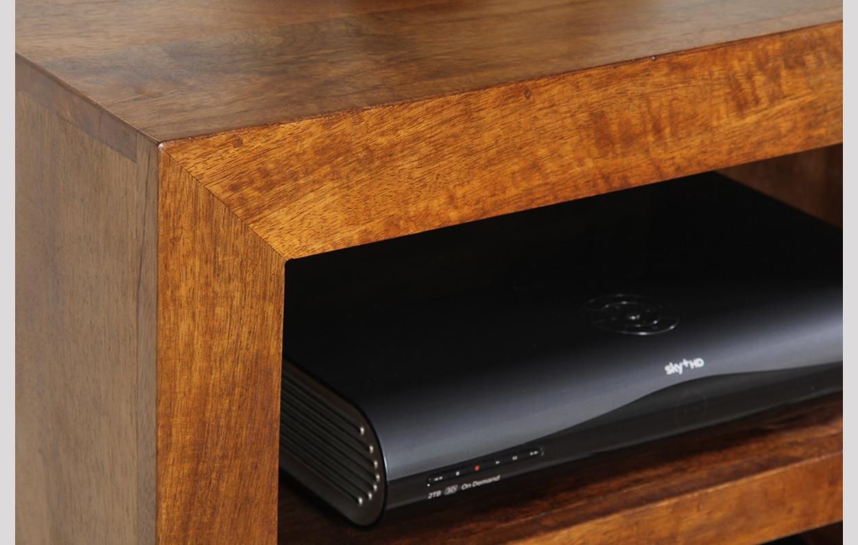 These units are made from 100% Solid Mango Wood throughout including the back and base of the unit,this piece has a dakota wood finish which is then sprayed with a satin lacquer to enhance durability.