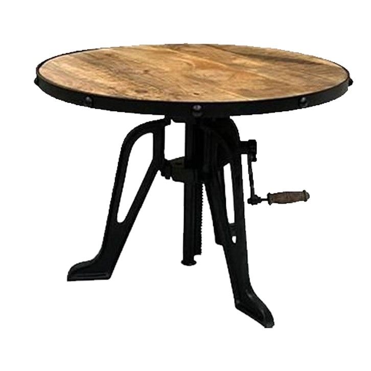 This exceptional Industrial Small Iron Crank Table is remarkably crafted from the most vital Indian Mango Wood, gives a striking light wood finish and a characteristic texture for that industrial design.