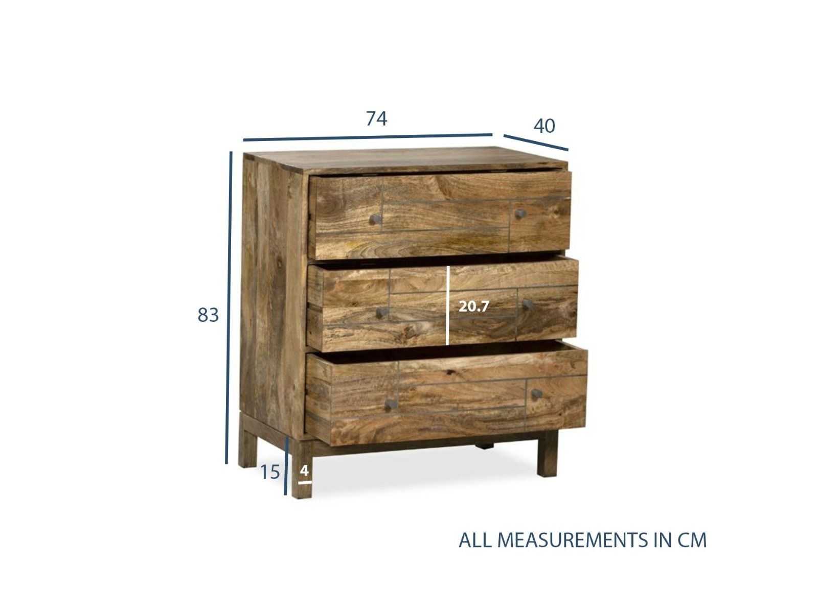 The Light Mango Chest of Drawers is a great piece to add to any space with its smaller frame.This unit features three spacious storage drawers ideal for clothes and other accessories.