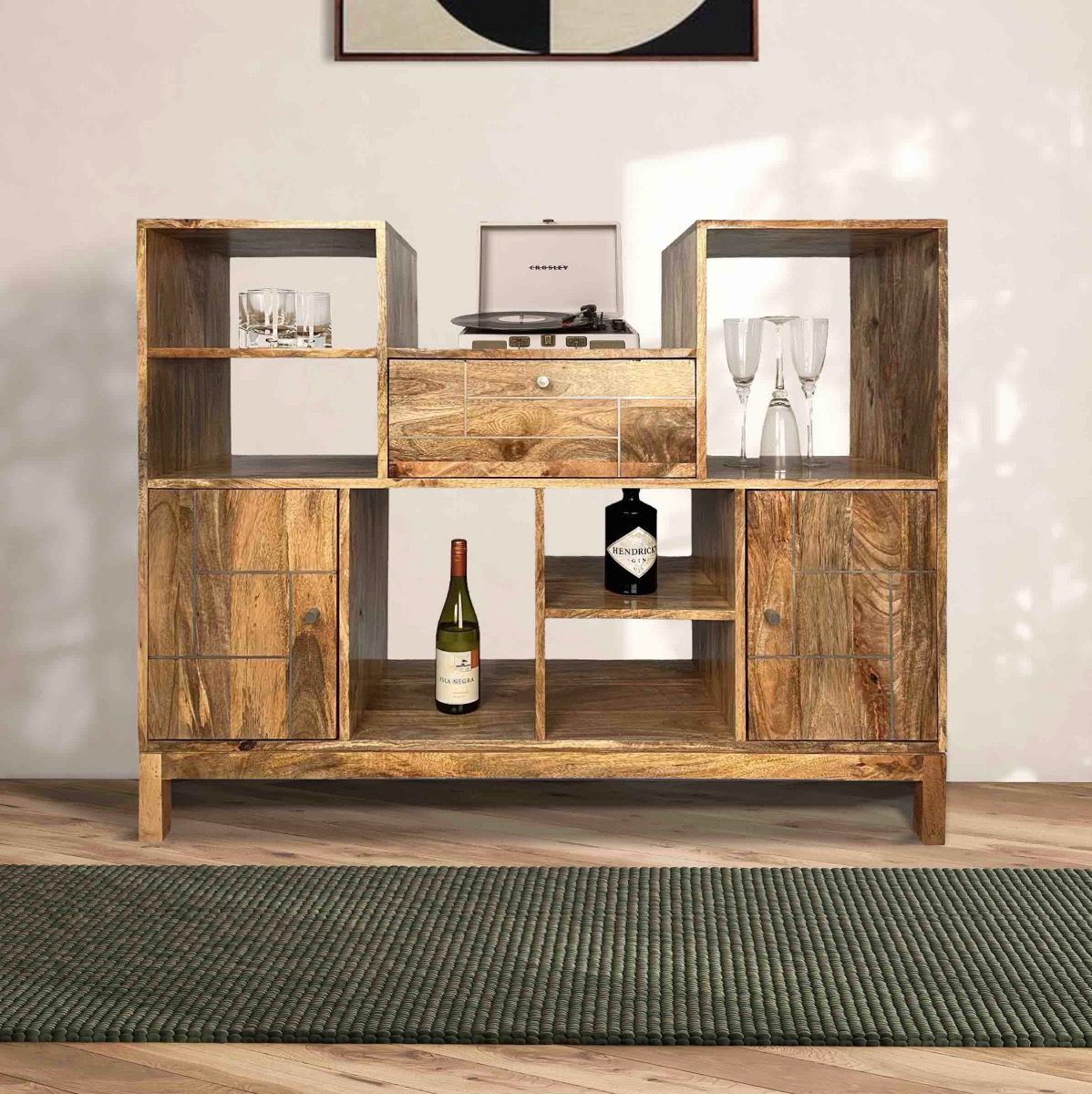 Inset Light Mango 130cm LP Turntable/Drinks Cabinet - In Stock