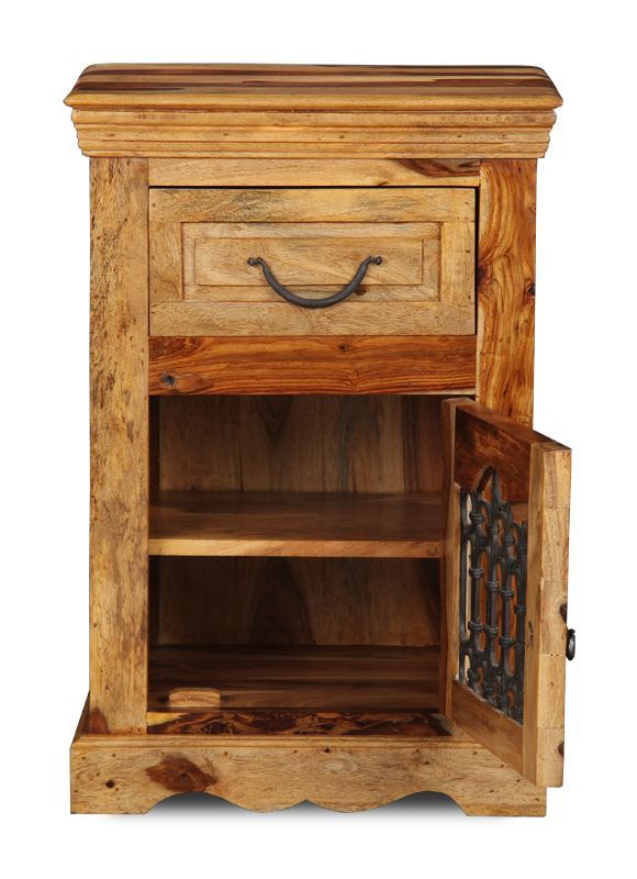 The Jali Light Cabinet with Drawer is made from only the highest quality Indian Sheesham Wood which in this instance is given a vibrant light wood finish. Along with this each unit also features distinctive cast-iron detailing which is inspired by traditional Indian Jali design.