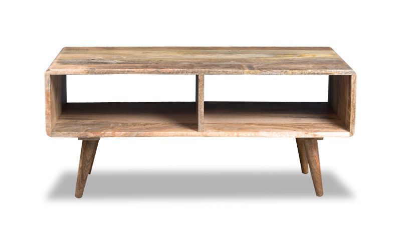 The Light Retro Chic Open Coffee Table is a perfect centerpiece for your living space. It features two open shelves and a large surface top ideal for storage of media items.