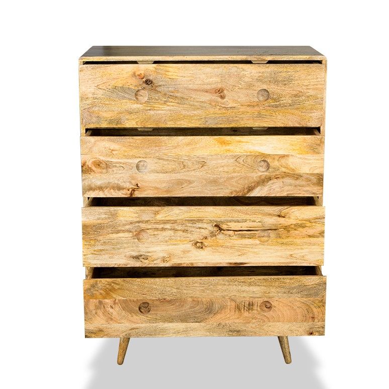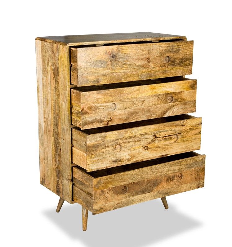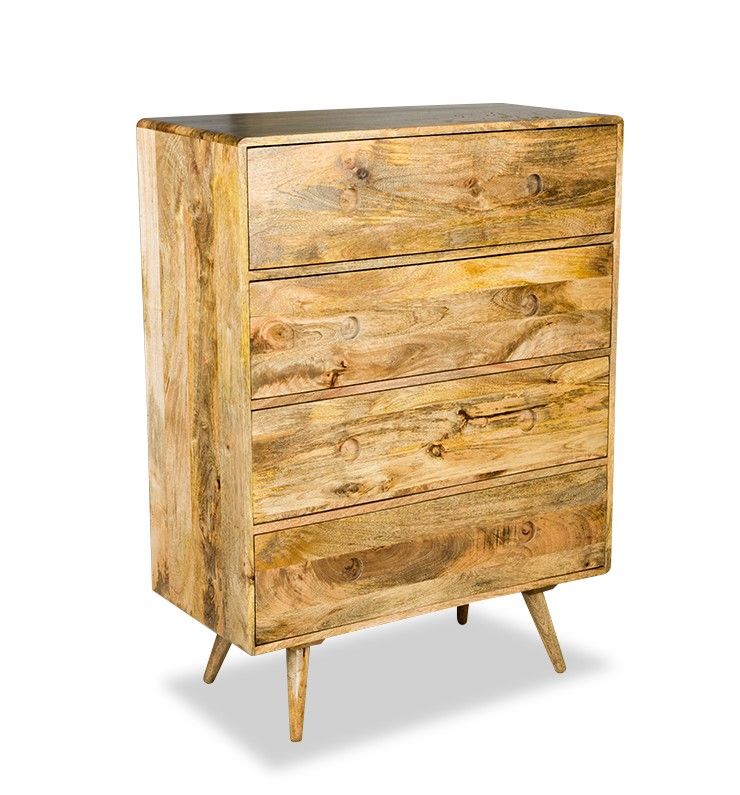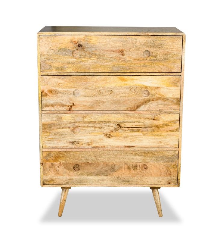 This Light Vintage Mango Large Chest of Drawers will offer an abundance of storage opportunities, featuring 4 spacious drawers this product is a must-have in any bedroom design.