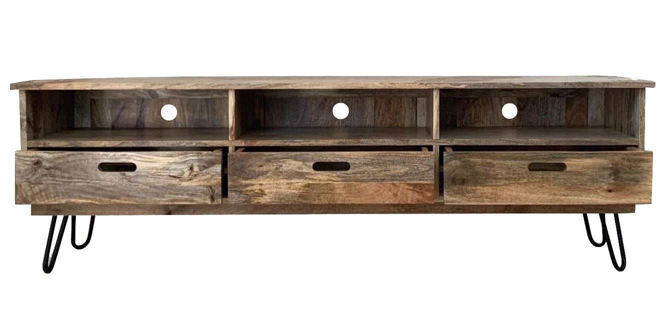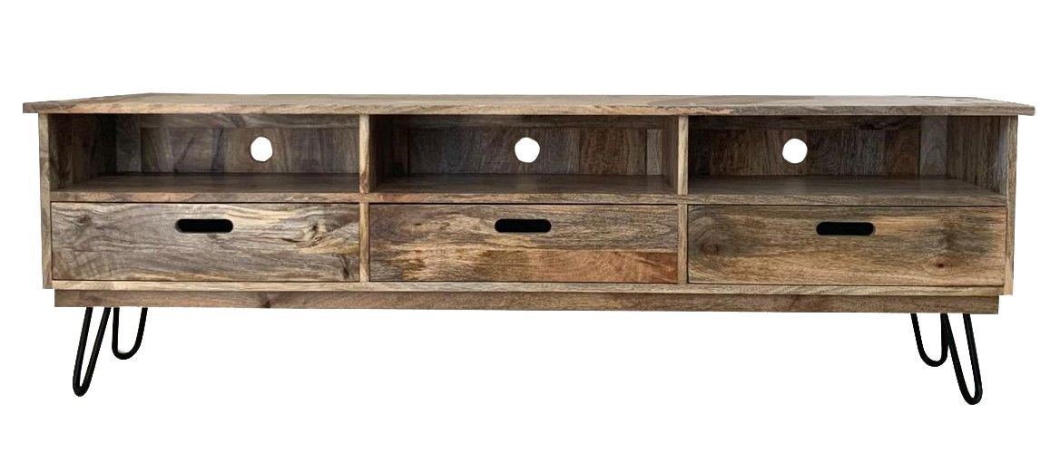 The Light Vintage TV Stand gives the perfect mix of style and storage, featuring 3 spacious drawers, 3 shelves and cable cut out holes to keep wires neat and tidy.