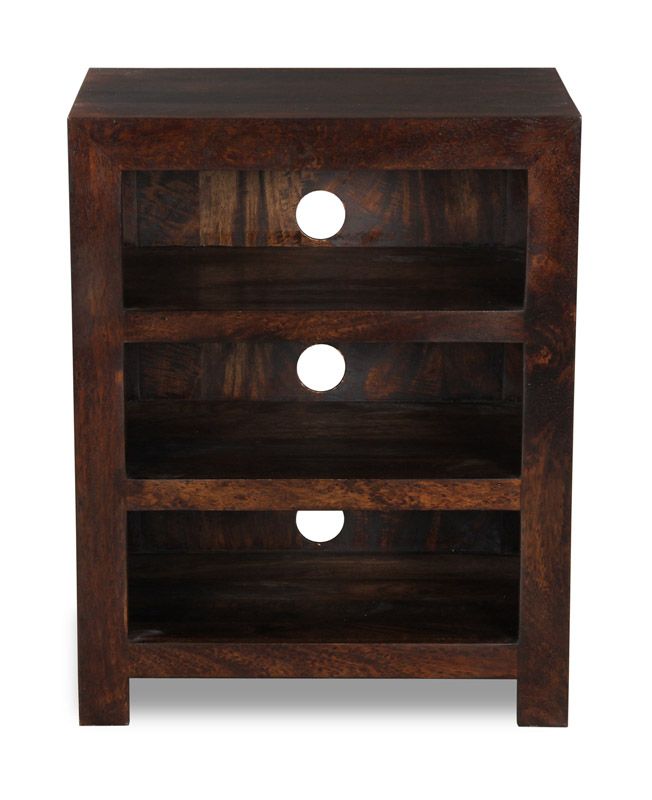 The Mango Wood Small Hi-Fi Unit is made from 100% indian solid mango wood throughout, including the backs and bases of each piece. Mango wood is naturally multi-tonal making each piece unique in appearance. This range is stained to achieve the dark appearance and finished with a satin lacquer which gives the furniture a beautiful soft sheen and ensures durability.