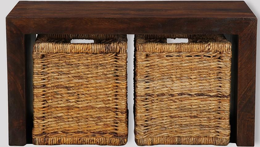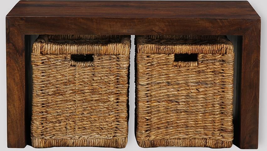 The Mango Wood Small Open Coffee Table with Rattan Baskets with its simple sleek design paired with two of our Rattan Baskets makes it an essential addition to any living space. The Rattan Baskets are made from Banana Leaf Fibers woven over a mahogany wood frame to ensure durability from everyday use.