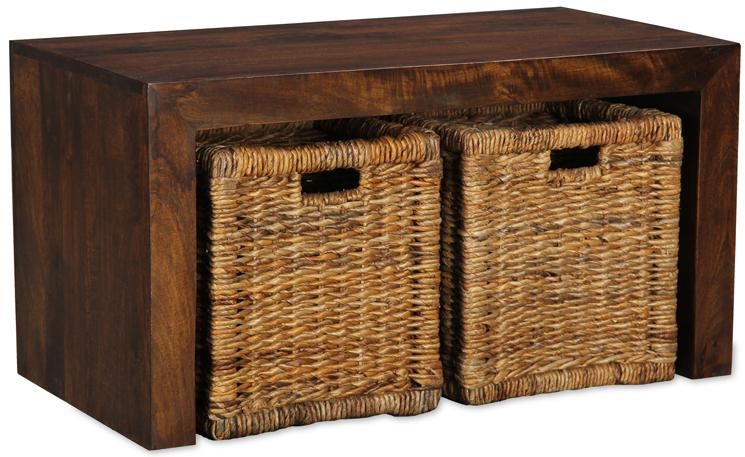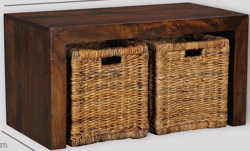 Mango Wood 85cm Open Coffee Table with Rattan Baskets - Due 26th April