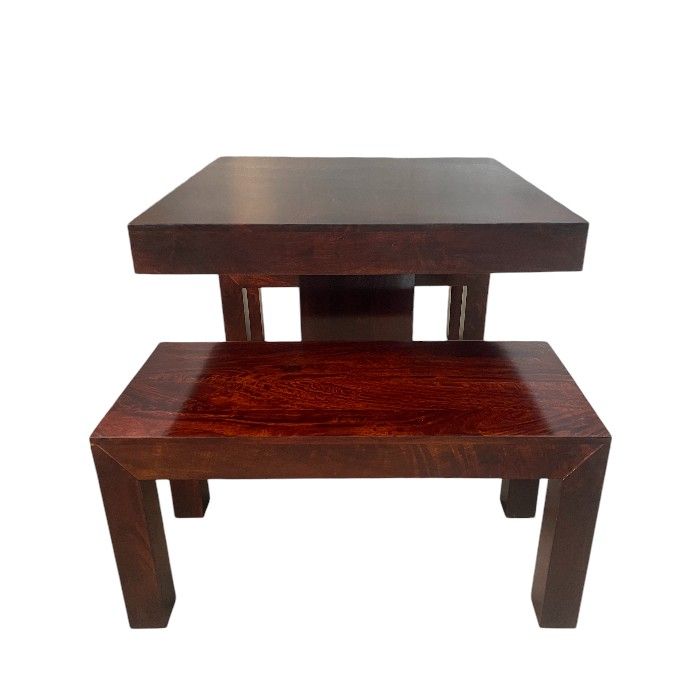 The Mango Wood 90cm Cube Dining Table & 2 Mango Wood Small Benches is perfect for smaller dining spaces as these benches can be stored neatly under the table ideal for space saving.