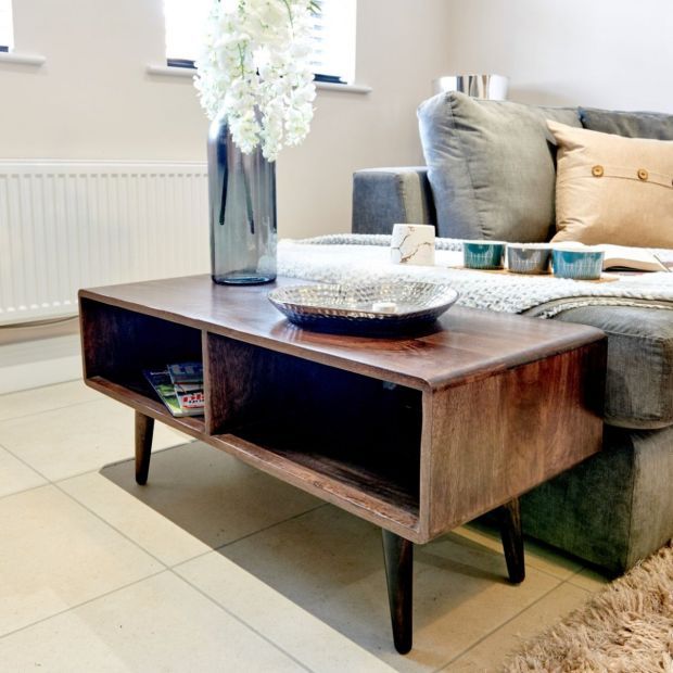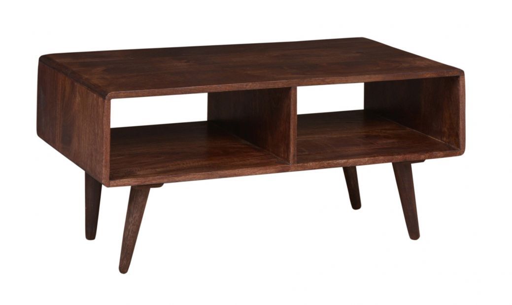 The Retro Chic Open Coffee Table is a perfect centerpiece for your living space. It features two open shelves and a large surface top ideal for storage of media items.