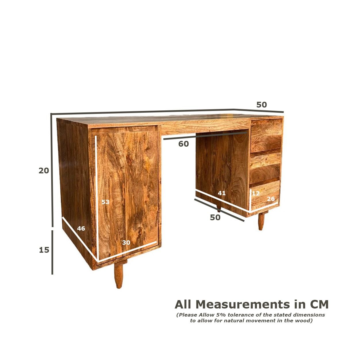 Each desk is made from 100% Solid Mango Wood and is finished with a satin lacquer to enhance durability.