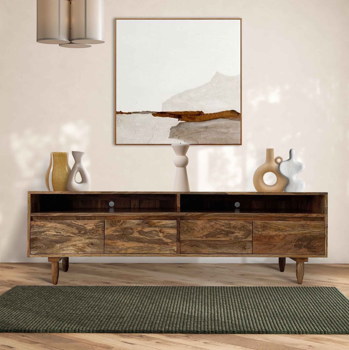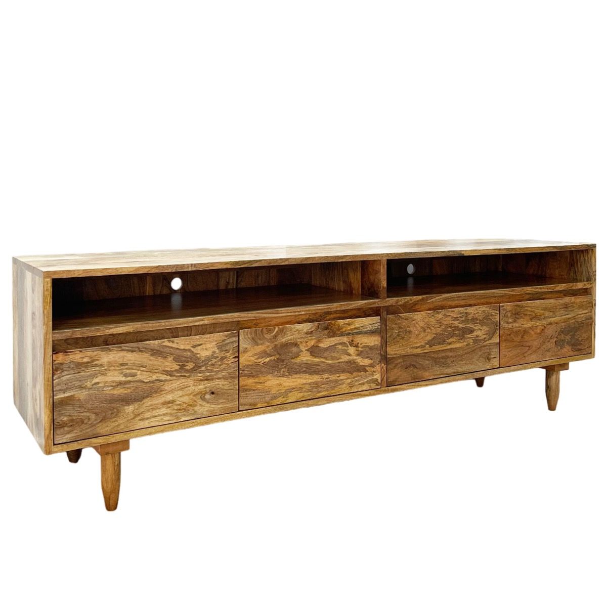 Our Scandi Mango Media Unit is crafted from 100% solid mango wood throughout, each piece is finished with a satin lacquer which enhances durability.