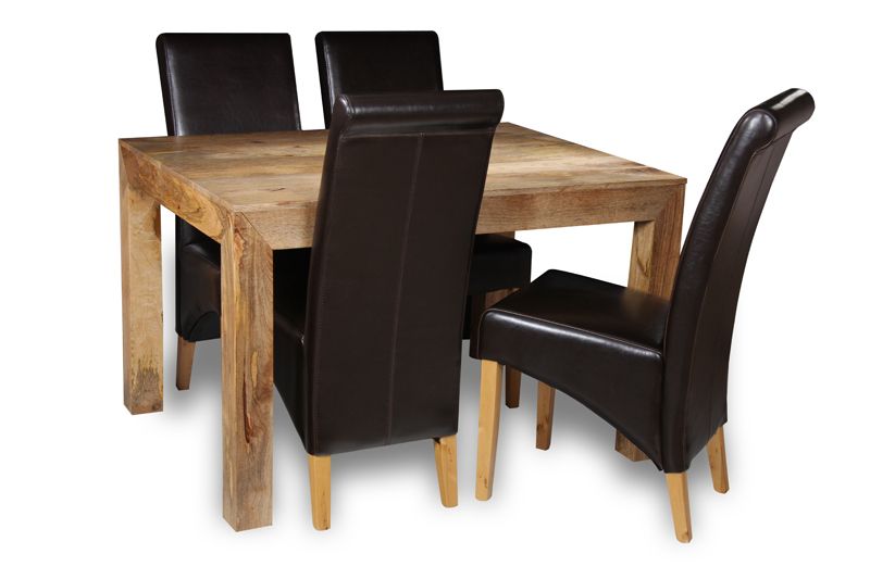 The Light Dakota 120cm Dining Table & 4 Leather rollback chairs are the ideal addition to any home dining space Each set features a single 120cm wide Light Dakota Dining Table with 4 handmade leather rollback dining chairs this set is ideal for family dining.