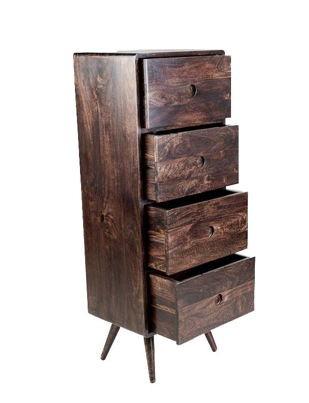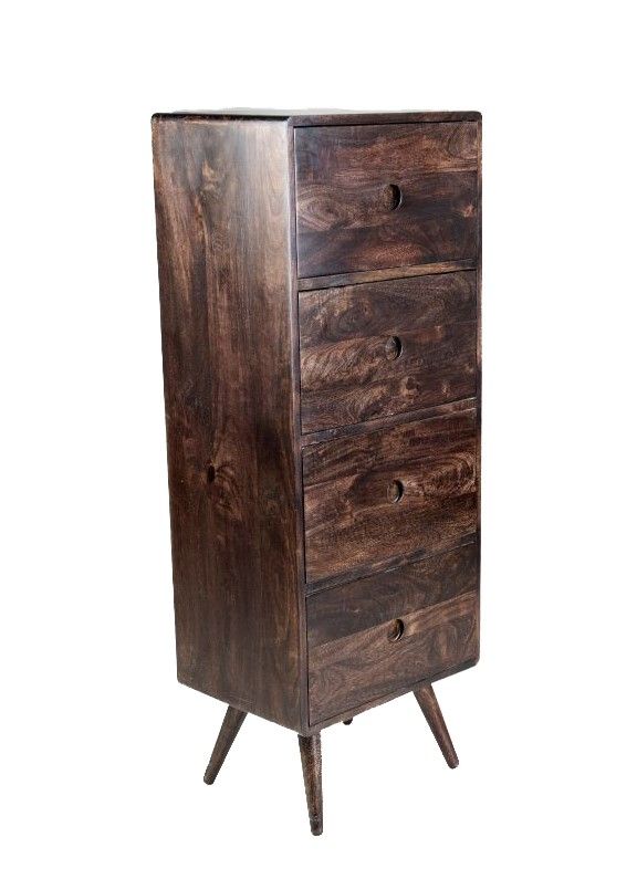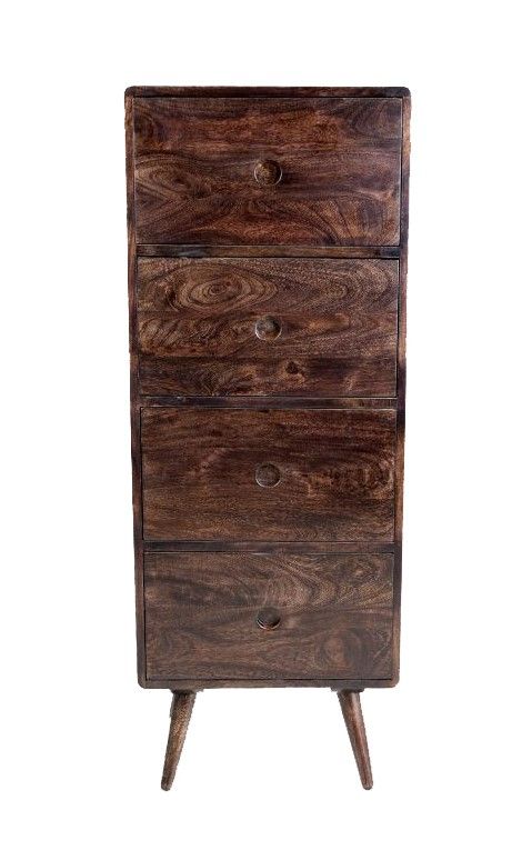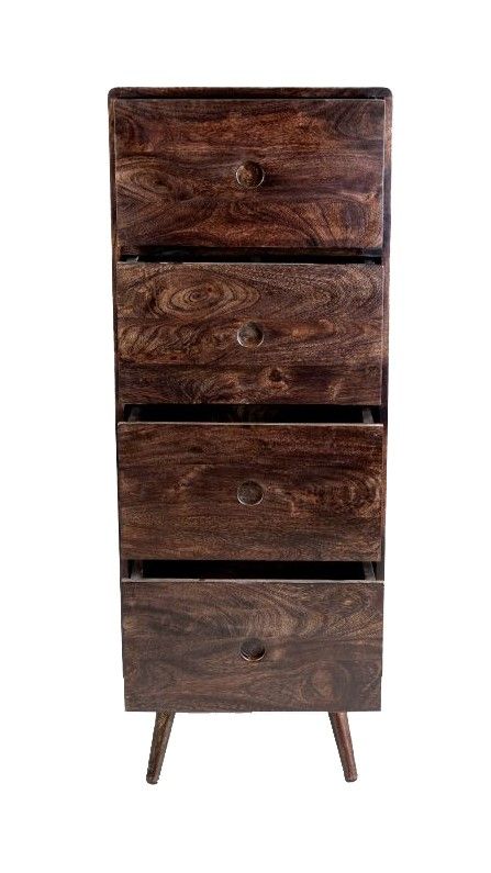 The Vintage Mango Tall Chest gives any room a large amount of storage possibilities with a compact design featuring 4 equally sized spacious drawers all with circular indent handles.