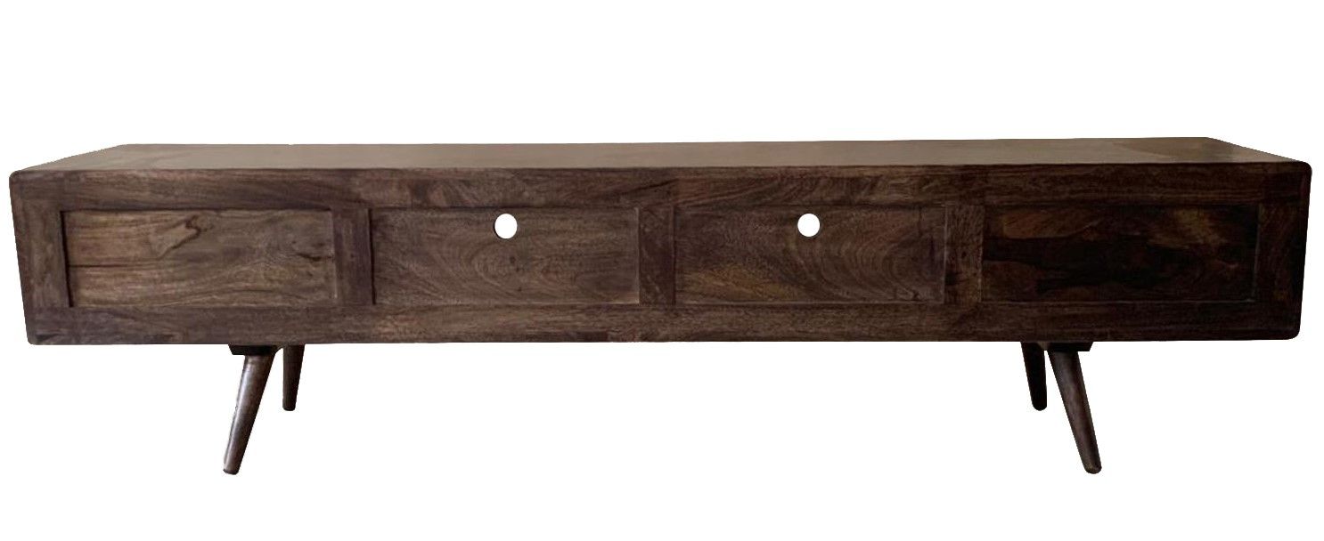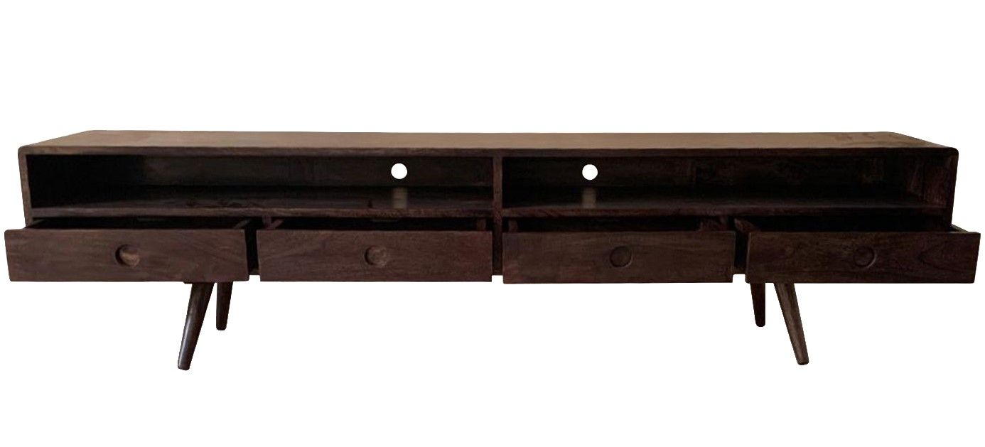 The Vintage Mango TV Unit features 4 drawers along the base of the unit and two media shelves above with two cable holes to keep wires neat. This unit is best suited to medium or large tv sets.